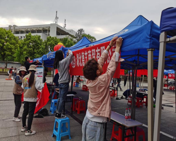 学校上下高度重视此次招聘会。早八点前,各院系就创部成员已在图书馆正门集合完毕,相关负责老师带领大家布置现场。