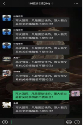 同时各班在周日集合时开展线上线下班会,精讲诈骗案例,提高同学们的安全意识,让同学们深刻认识到防诈反诈的重要性。