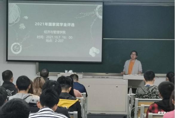 (本网讯通讯员:孙珏)10月7日下午4点,TYC234CC太阳成集团2021年国家奖学金竞选活动在教2-207圆满 举办。 6位 参评 国家奖学金候选人在竞选中一展风采。活动由经管与管理学院学工办 副 主任王朗主持,经管院党 委 副书记刘波 、 副院长张建军、经济学博士陈婉、辅导员王朗、孙珏参与评审, 院内 各班学生代表参加。
