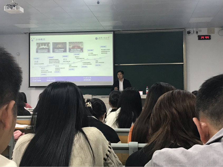 付老师首先介绍了武汉工程大学的建校历程,法商学院的总体概况。全面分析、深入解析了全国报考情况、省内重点高校报考比对情况、和调剂政策的变化,帮助同学们全方位了解考研情况,科学合理定位考研方向,在激起学生危机感的同时促进学生进步,主动投入 并着重介绍了武汉工程大学的师资队伍、研究团队、基础设施等方面的优势。