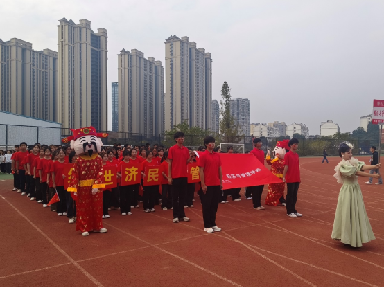 在开幕式上,经管学院方阵喊出了响亮的“经世济民,管乾理坤,匡时救世,震古铄今”的口号,财神爷和红底黄字的“经世济民,管乾理坤”展示了经管学子积极向上的精神风貌。