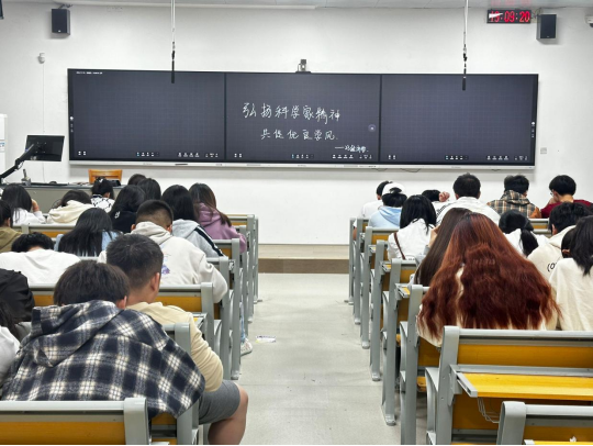 主题班会共有集中领学、学习交流和宣誓三个环节。在集中领学环节,各班负责人(含辅导员、班主任、班长)领学了习近平总书记关于弘扬科学家精神和加强作风学风建设工作重要指示精神,以及《关于进一步弘扬科学家精神加强作风和学风建设的意见》文件精神,观看了我国科学家故事的影像资料,深入学习了新时代科学家精神的具体内涵、历史底蕴和重要价值;在学习交流环节,各班通过知识竞答、交流心得体会等方式就科学家精神的核心、时代意义、深刻内涵以及学术不端行为等问题开展了深入交流;在宣誓阶段,各班负责人带领全体同学宣誓,坚决恪守学术道德、抵制学术不端、践行科学家精神。
