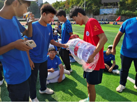 下午14:30,班长石胜丽、杨成武集合青马班成员于西区服务点集合,将成员分为三组,第一组是由谢思添以及李进锋等同学在操场看台下的服务点为新生进行倒水等暖心服务,并且也在新生的好奇与询问中为他们解释青马班的作用与意义,第二组是由杨成武、杨冬勤等成员对在操场原地休息的同学进行亲送水服务,方便口渴的同学不离开原地也可以得到补给,并且为了防止同学们喝水过后废纸杯无法及时处理,成员们也贴心的准备了一个垃圾袋,将操场卫生得到保证,第三组是由杨雯祈同学跟随黄健同学对看台上观训的同学进行点名报备登记。将任务分配好后,各成员各司其职,认真完成好自己的任务。