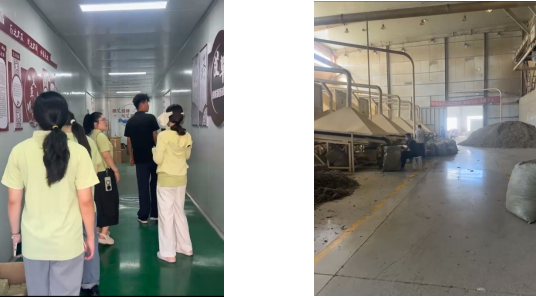 随后,促进团参访了国医大艾各类车间,在参访通道中,“艾草发展”“艾草功效”“艾之起源”等展板依次排开:从艾草的历史演变、医用价值到民俗文化中的应用系统梳理艾草产业的文化脉络。同学们驻足研读展板内容对艾草产业的文化底蕴、发展潜力,对艾草产业的助农潜力有了更深认知。