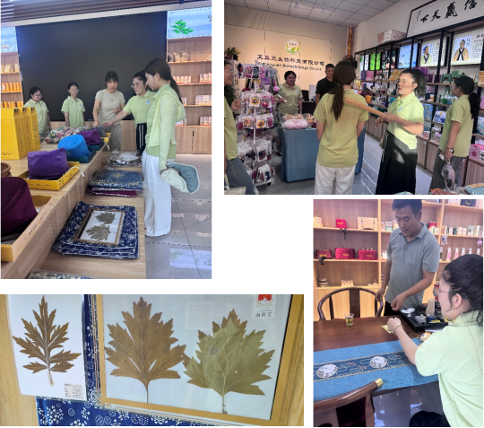 踏入国医大艾产品展厅,品类丰富的艾健康产品矩阵有序陈列,彰显全产业链发展格局。工作人员依次向促进团介绍其公司所有的十大系列产品,成员们依次切身体验企业的各类产品,在互动交流中围绕各类产品的产业助农链条、研发思路、市场定位、线下营销、提升产品销量、线上营销思路等与工作人员展开了热烈探讨。