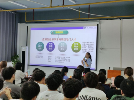 各专业负责人依次上台开展“定制化”专业解读。财务管理专业负责人聚焦财务数字化转型趋势,从“基础会计—中级财务会计—智能会计”的课程进阶体系入手,讲解了CPA、ACCA等证书备考与专业学习的衔接方法;工商管理专业负责人结合当下直播电商、私域流量运营等热门案例,分析了专业在品牌策划、消费者行为分析等方向的培养重点,以及校企合作实践项目的参与路径;经济学专业负责人则围绕RCEP等国际贸易新规则,拆解了跨境电商实务、国际贸易单证等核心课程的学习目标,强调外语能力与贸易实操技能的双重提升。