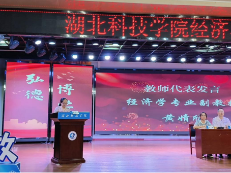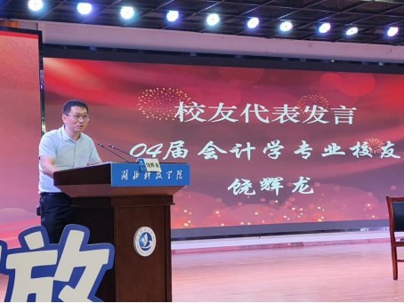 经济学副教授黄靖欣作为教师代表发言。她结合多年教学经验,从专业学习方法、学术研究态度等方面为新生提供指引。黄教授鼓励新生们保持对知识的渴求,积极参与课堂互动与学术实践,在经济学领域深耕细作,追求卓越。2004届会计学专业校友饶辉龙也来到现场,分享自己的职业经历与发展心得。他结合行业实践,为学弟学妹们剖析职业发展方向,勉励大家珍惜大学时光,夯实专业基础,为未来职业发展筑牢根基。