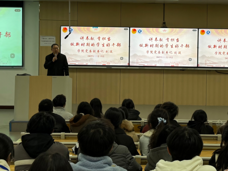 会议第三项,定光平发表讲话,他指出,学生干部是学生中的先进分子,是老师与学生沟通的坚实桥梁,也是配合学院活动开展不可或缺的力量。他从当学生干部的动机进行了深刻的阐释,对团委学生会的工作态度与工作情况表示赞扬与鼓励,并对团委学生会的学生干部寄予厚望。