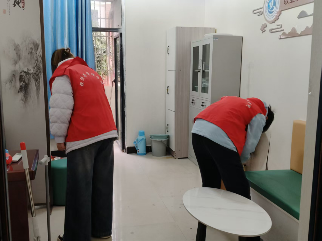 在办公楼,大家重点对楼道走廊、楼梯扶手、办公公共区域开展清洁,认真擦拭门窗、宣传栏与文件柜,清理墙面污渍与角落积尘,规整乱堆物品,用双手将办公环境打扫得井然有序,以实际行动为老师们营造清爽整洁的工作氛围,用点滴行动诠释服务精神。