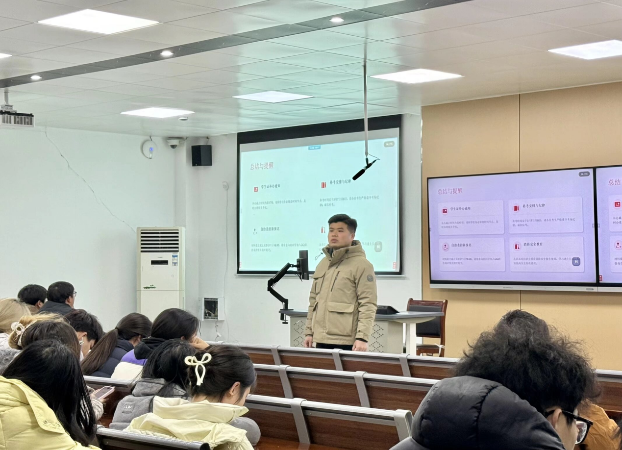 班会过程中,各辅导员依次开展各项工作部署与教育引导,先是传达学生证补办通知,明确补办系统开通事宜,提醒有需求学生及时办理;随后针对春季学期开学补考,着重强调考风考纪,明确违纪舞弊的严重后果,要求学生诚信应考;同时详细解读学生社区自治委员会招新要求,指导意向学生按规报名,鼓励学生参与校园自治管理。此外,各班还结合湖北省消防安全宣讲要求,组织观看《荆楚消防》安全教育宣讲视频,结合校园典型案例讲解宿舍用电、防火逃生等知识,强化学生消防安全意识。