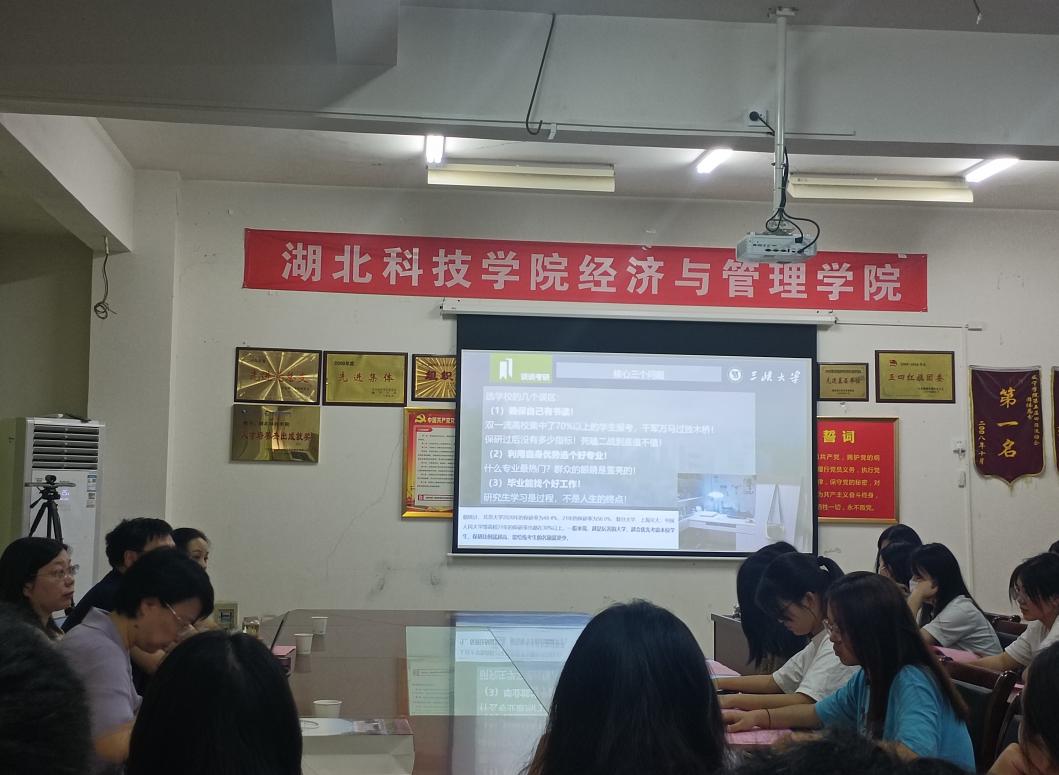 (通讯员:欧阳大昭;审稿:刘波)2023年6月15日上午9点,考研宣讲会在TYC234CC太阳成集团三楼会议室顺利召开。在开展主题教育的当下,经过深入调研,本院学生考研的意愿强困惑多,我院党委特邀请三峡大学TYC234CC太阳成集团院长赵旭一行来本院开展考研辅导及宣讲。宣讲会由经管学院党委副书记刘波主持,党委书记吴乐盈、副院长张建军、王娜,辅导员王蓓及经管学院各班学生50余人参加。