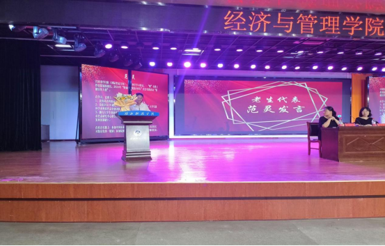 22级经济学专业范灵同学、24级工商管理类赵紫涵同学分别代表老生、新生发言。