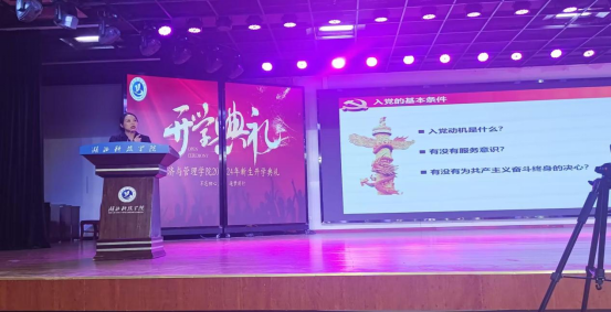 随后,经管学院学生第一党支部书记喻瑜老师为新同学们上了微党课。她为新生们介绍了入团、入党的相关流程和注意事项。她希望大家都能够向共产党员看齐,向党组织靠拢,以共产党员的要求严格勉励自己。希望大家秉持勤奋与进取,追求卓越与完美,做好大学生生涯规划,为社会的发展和进步贡献自己的力量。