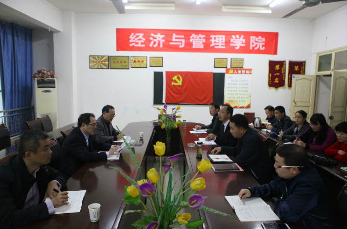 党总支书记黎鸿翔、院长胡俊超教授分别代表经管院就党建工作、教学科研、转型发展等整体情况进行了汇报,既介绍了经管院近年来取得的成绩、发展的思路,还提出了存在的问题和需要学校解决的困难。