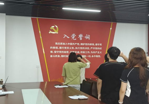 在签到、交纳党费后,全体党员重温入党誓词,接着齐诵《中国共产党章程》,学习党规党纪。