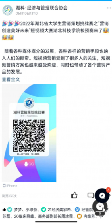 (本网讯通讯员 陈鹏)2022年2022年湖北省大学生营销策划挑战赛之“营销创造美好未来”短视频大赛湖北科技学院赛区预赛决赛于2022年9月19日晚19点在线举行。本次校内预赛共有13个队报名参赛,最后选拔5支队伍进入校内决赛,校内决赛邀请了武汉乐为传媒科技培训业务负责人王诗靖、武汉乐为传媒抖店运营负责人史志新、工商管理专业负责人陈鹏、新媒体营销老师傅建华、范博等五名校内外专家担任了评委。