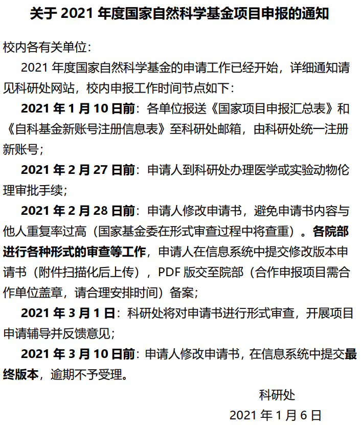 (转)关于2021年度国家自然科学基金项目申报的通知