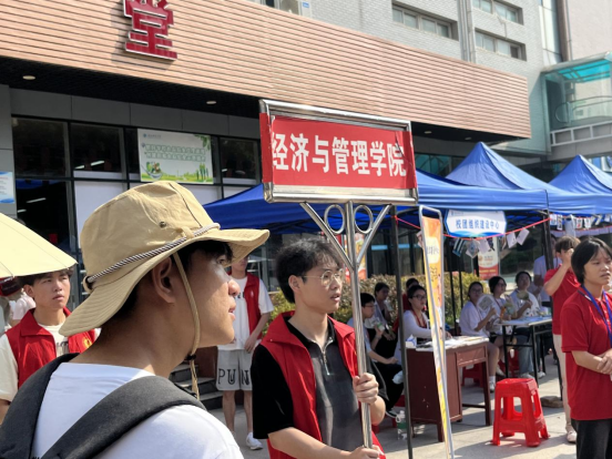经管学院精心策划,分别在教三、西区食堂以及院办设立了三处迎新点。这样的布局确保了无论新生从南大门还是西门进入校园,都能迅速被我们的志愿者接待。志愿者们热情周到,帮助新生们快速安置行李并引导他们前往寝室,随后前往院办完成报到手续。整个迎新流程设计得有序而高效,确保了新生们能够顺畅地完成入学第一步,感受学院的温馨与关怀。