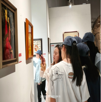 师生校友先一同走进艺术村的百遗工坊博物馆参观文创展品。踏入馆内,柔和的灯光映照着琳琅满目的展品,仿佛一幅绚丽多彩的文化画卷在众人眼前徐徐展开。从彰显地方特色的民俗手工艺品,到充满奇思妙想的创意文具,每一件展品都凝聚着创作者的智慧与心血。师生们穿梭于各个展区,或驻足凝视展品细节,细细品味其中蕴含的文化韵味;或拿出手机,记录下这些精美的文创作品;还有的围在一起,兴致勃勃地讨论着自己对展品的理解与感受。在浓厚的文化氛围中,大家感受着文创艺术的独特魅力,也在不经意间拉近了传统文化与现代时空的距离。