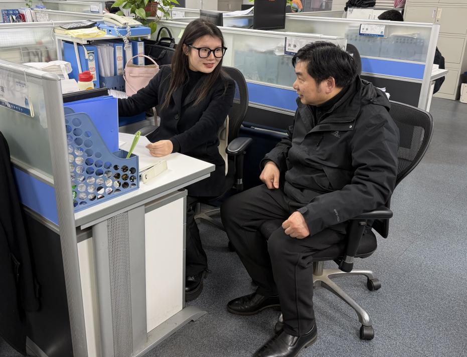 座谈会上,汉口银行咸宁分行行长杨洋、副行长秦松对我院一行的到来表示热烈欢迎,详细介绍了该行发展历程、核心业务布局以及对专业人才的长期需求,充分肯定了我院毕业生的专业基础和综合素质。院长定光平结合我院毕业生就业意向、岗位需求实际,围绕人才培养、就业观念引导、企业导师聘任等方面与该行负责人深入磋商、达成共识。随后,院长定光平一行看望了2024届毕业生左瑄,了解该生工作内容、适应情况以及职业发展规划,鼓励该生将所学知识学以致用、踏实进取、实现自我价值,并转达了学院对毕业生“常回家看看”的殷切期望。