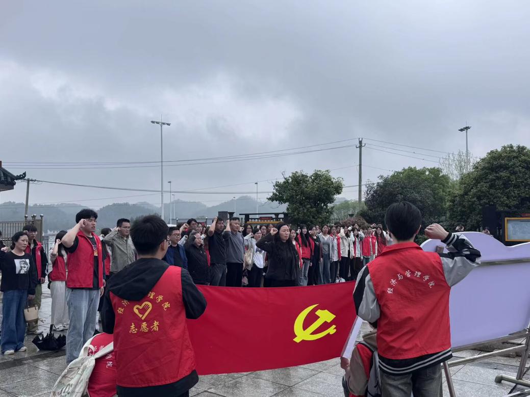 党课结束后,举行庄重的敬献花篮仪式。大家整齐列队,向烈士纪念碑敬献花篮,定光平上前整理缎带,以最诚挚的礼仪表达对革命先烈的深切缅怀与崇高敬意;全体人员肃立默哀,追思英烈功绩。在教师党员蔡青青的领誓下,全体师生面向党旗,庄严重温入党誓词,坚定为共产主义事业奋斗终生的理想信念。