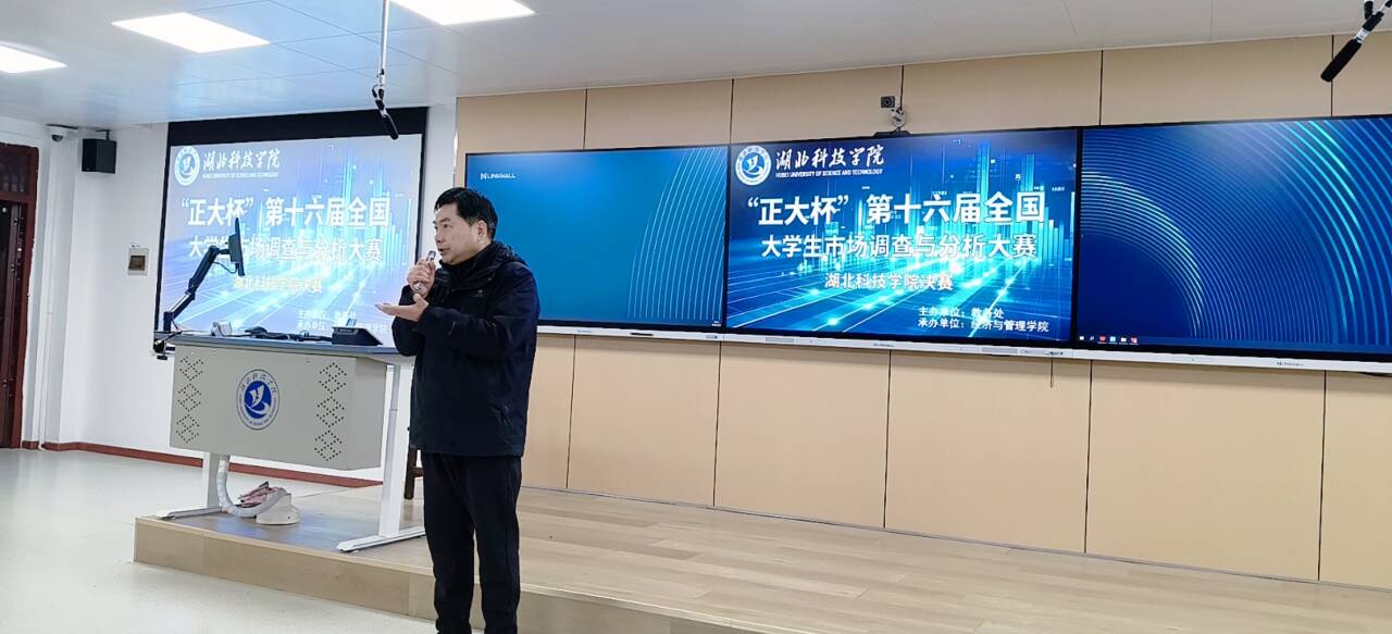 全国大学生市场调查与分析大赛是全国高校学科竞赛排行榜中的优秀竞赛项目,是国内一流的全国性大赛,是我校认定的A类赛事,也是政府支持、企业认可、高校师生积极参与、两岸四地高度联动的实践育人平台,深受广大师生和社会各界认可。大赛自2025年10月启动以来,吸引了校内工商管理、经济学、统计学等十多个专业学生的热情参与,本次校赛报名人数达540人。经前期报名、知识赛、初赛,共有50支参赛队伍参与了校预赛,最终有22支团队进入校决赛,分为本科生组与研究生组。创新创业学院副院长张玲、经管学院副院长王娜及工商管理专业、经济学专业、统计学专业等10名教师出席活动,其中5名教师担任评委。